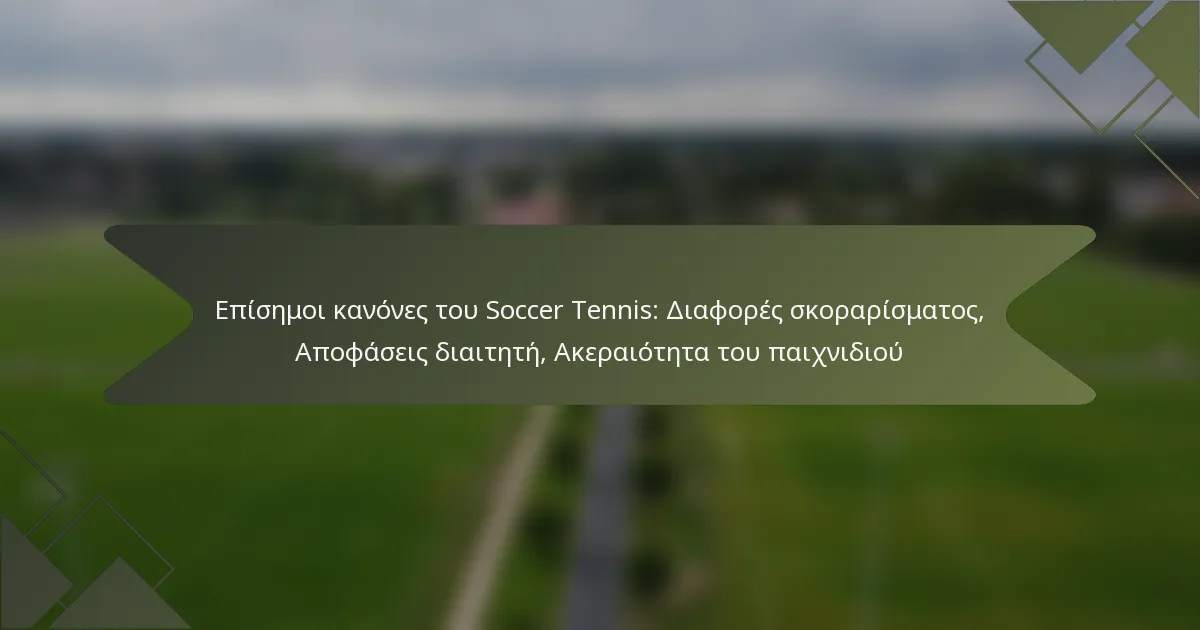 Το ποδοσφαιρικό τένις είναι ένα συναρπαστικό άθλημα που συνδυάζει τις δεξιότητες του ποδοσφαίρου και του τένις, απαιτώντας από τους παίκτες να χρησιμοποιούν τα πόδια τους για να στείλουν μια μπάλα πάνω από ένα δίχτυ σε έναν καθορισμένο γήπεδο. Η ακεραιότητα του παιχνιδιού εξαρτάται από σαφείς κανόνες σχετικά με τις διαφορές στο σκορ και την εξουσία των διαιτητών, οι οποίοι διασφαλίζουν το δίκαιο παιχνίδι και τηρούν τους καθορισμένους κανονισμούς. Η αποτελεσματική επικοινωνία μεταξύ παικτών και διαιτητών είναι ζωτικής σημασίας για την επίλυση συγκρούσεων και τη διατήρηση ενός ανταγωνιστικού κλίματος.