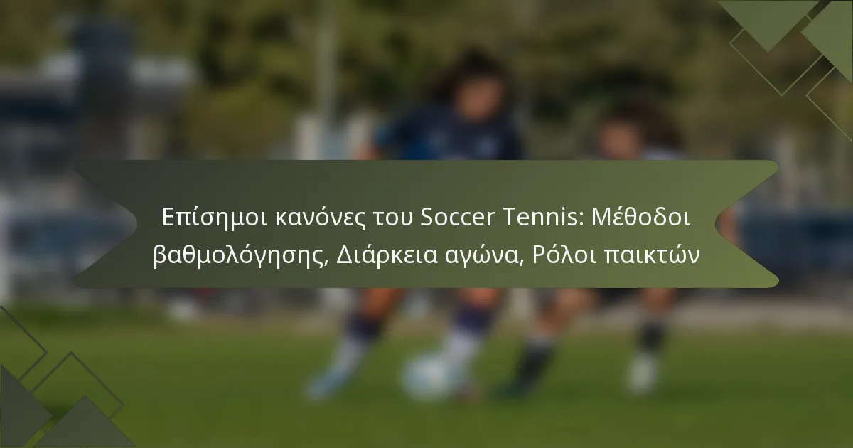 Το ποδοσφαιρικό τένις συνδυάζει στοιχεία του ποδοσφαίρου και του τένις, χρησιμοποιώντας ένα σύστημα βαθμολόγησης όπου οι παίκτες ή οι ομάδες σκοράρουν κερδίζοντας ράλι. Οι αγώνες μπορούν να διεξάγονται σε μονά ή διπλά, συνήθως διαρκώντας από 30 έως 60 λεπτά, και περιλαμβάνουν συγκεκριμένους κανόνες βαθμολόγησης. Οι ρόλοι των παικτών είναι ουσιαστικοί, καθώς κάθε συμμετέχων έχει καθορισμένες ευθύνες που επηρεάζουν τη συνολική στρατηγική και απόδοση της ομάδας.